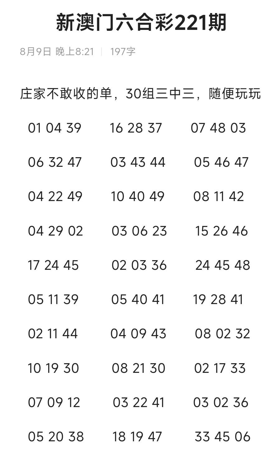 有三中三的资料吗?分享一下,我有一个平台能买三中三,99倍